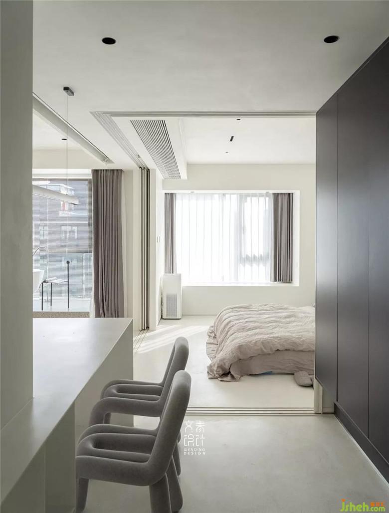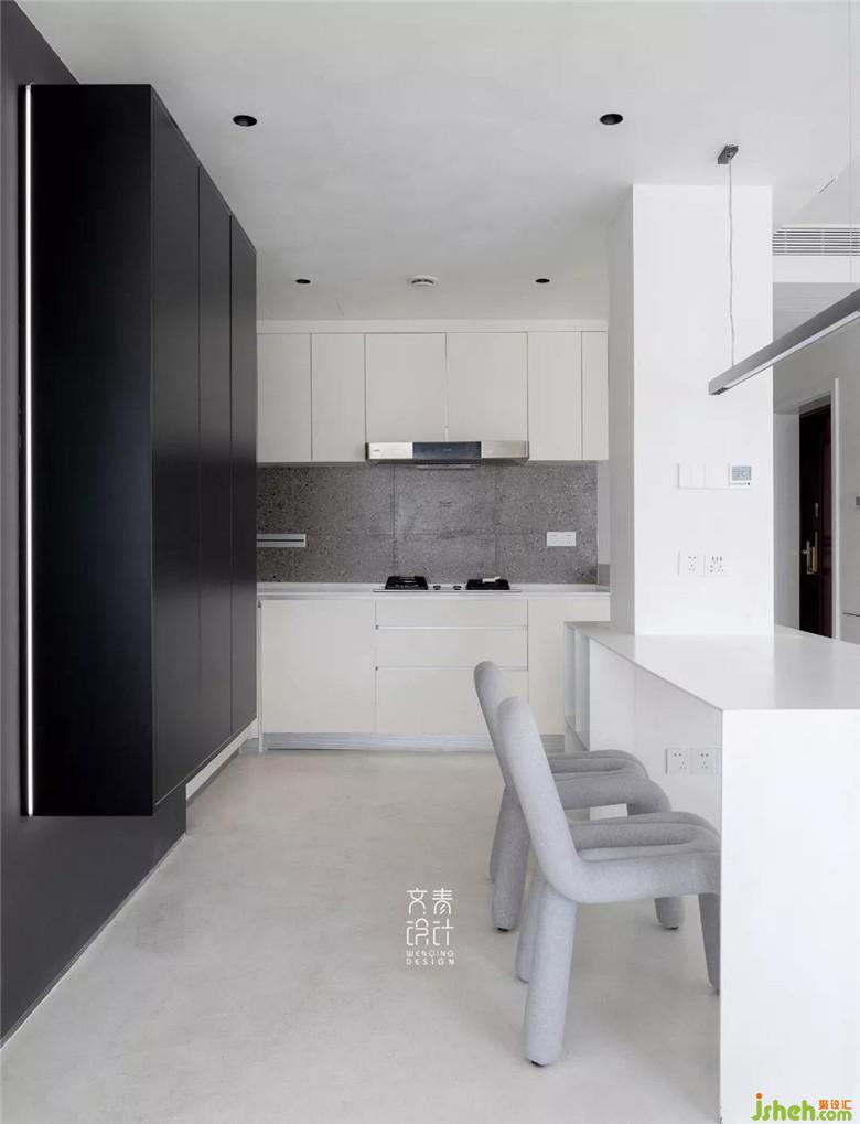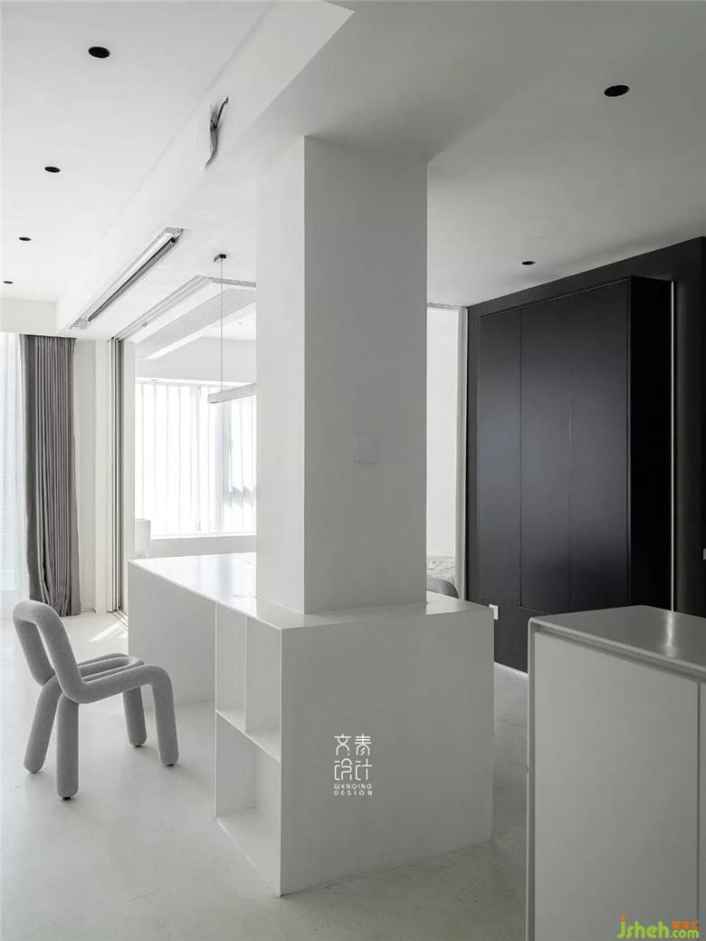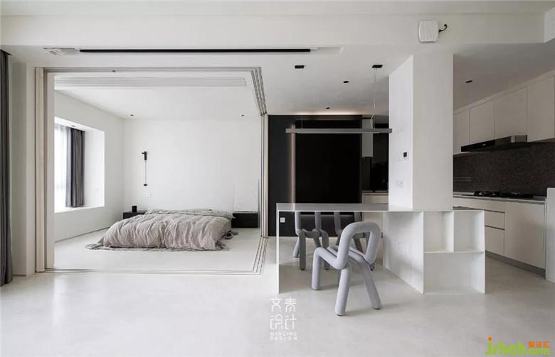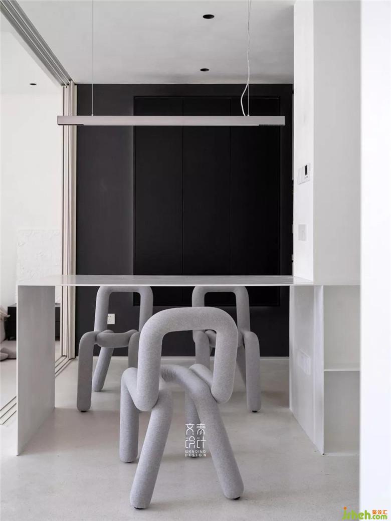 裝修公司用僅不到10毫米厚的鑄剛純白餐桌,融于這一整個(gè)純白空間的,絲毫不顯得突兀。設(shè)計(jì)中減法做到極限的這里,在這兒就餐你也僅僅只會(huì)把注意力放在食物上。