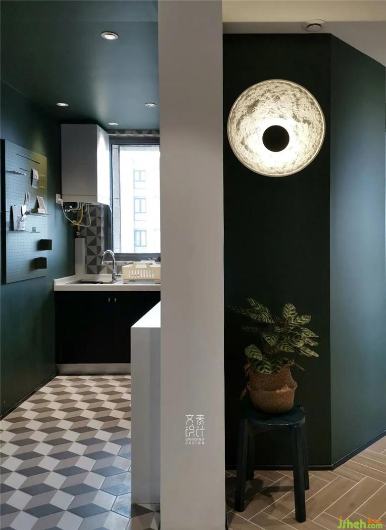 入戶門進來第一眼看到的是一堵異形墻,裝修公司的設(shè)計師用一盞燈將人帶入了無限的遐想——整個家似乎化身變色龍,你是什么“顏色”,家也就“變成”什么“顏色”。