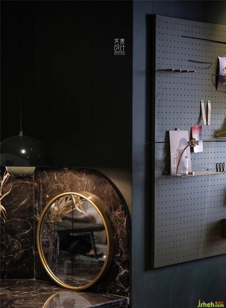客廳的拐角處裝修公司的設(shè)計(jì)師用鏡子規(guī)避了直硬的線條,讓空間在視覺上得到了延伸,又多了另一個視角去欣賞家。