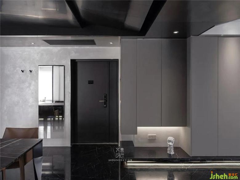 換個角度看玄關(guān)區(qū)域。裝修公司在玄關(guān)和餐廳頂部大膽運(yùn)用幾何美觀來進(jìn)行設(shè)計(jì),做了幾何層次的造型,并且使用了業(yè)主喜歡的金屬質(zhì)感材料——不銹鋼。換個角度看玄關(guān)區(qū)域。我們在玄關(guān)和餐廳頂部大膽運(yùn)用幾何美觀來進(jìn)行設(shè)計(jì),做了幾何層次的造型,并且使用了業(yè)主喜歡的金屬質(zhì)感材料——不銹鋼。