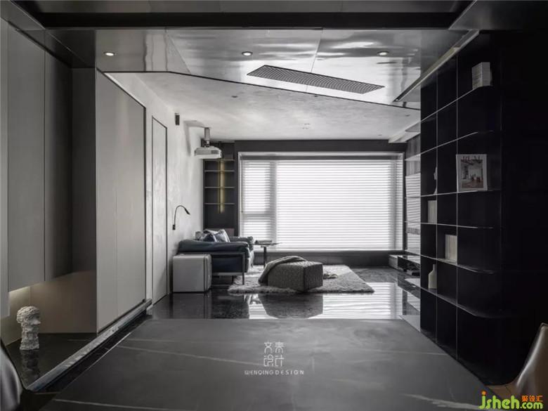 裝修公司采用家裝里比較少用的不銹鋼吊頂設(shè)計(jì),造就了獨(dú)樹一幟的風(fēng)格體驗(yàn),通過材質(zhì)將空間區(qū)分,用線條延伸視線。