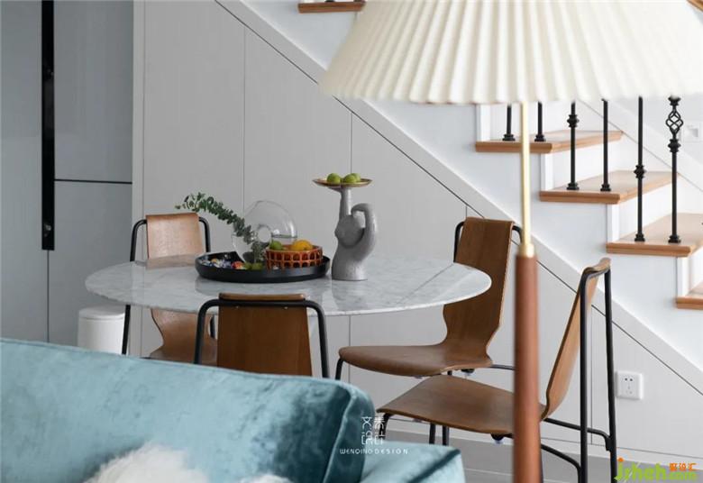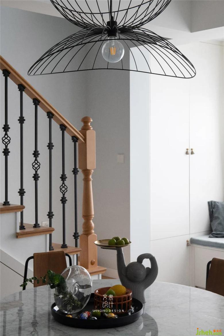 餐廳主要以簡(jiǎn)約為主,只用了一盞鐵藝吊燈做裝飾,與客廳僅“一步之遙”,提高了家人之間的互動(dòng)性。