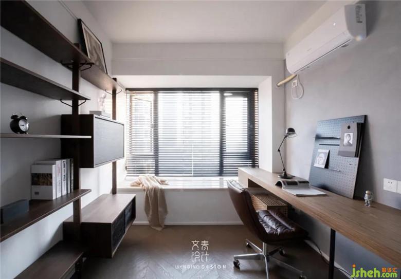 ▼書房因為工作原因,業(yè)主對書房的辦公需求特別看重,裝修公司在書房定制了整面的書柜,可以用來展示業(yè)主各處海淘回來的擺件和玩具,定制的超大書桌又給辦公提供了充足的空間。