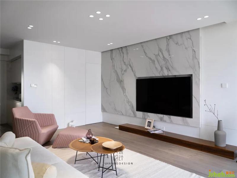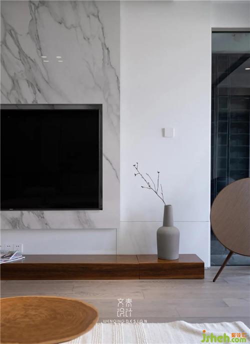 從玄關(guān)入戶既是“新世界”,充滿質(zhì)感的大理石背景、古樸的原木電視機(jī)柜,看似硬裝上運(yùn)用了眾多硬朗的材質(zhì),但我們?cè)谲浹b上引入寫(xiě)意空間經(jīng)典款沙發(fā),融合了柔軟舒適的年輕氣息,營(yíng)造出寧?kù)o淡雅的空間環(huán)境。