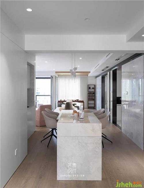 陽光好的時候可以打開多功能房折疊移門,將南邊最好的自然光引入室內(nèi),彌補(bǔ)餐廳區(qū)域沒有自然光的遺憾。