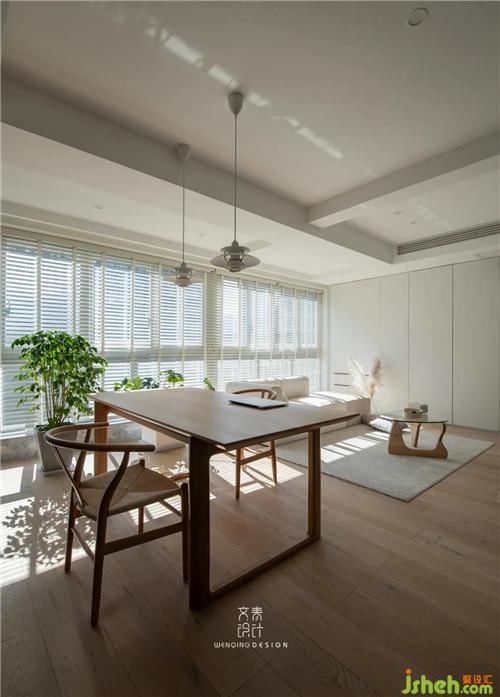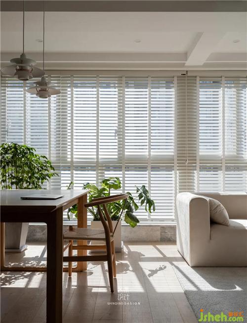 一桌兩椅妥妥滿足單人soho需求,當(dāng)辦公疲倦時(shí)也能欣賞下書桌旁的綠植角,舒緩眼睛放松心情。