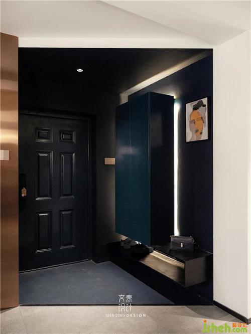 這套案例有別于傳統(tǒng)的入戶玄關(guān)空間,我們采用從地到頂湖藍色的乳膠漆,視覺上塑造了一個獨立的玄關(guān)空間,置物架用鋼板以墻而建,常用的鞋子、包包都可以隨手取放,好看的同時也兼顧了實用性。