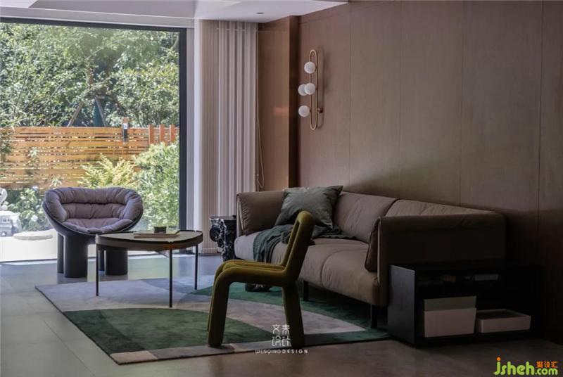 一樓客廳有著視野超好的私家花園,戶型的天然優(yōu)勢,在設(shè)計過程中根本不用擔(dān)心自然光的問題,落地窗的設(shè)計讓人不錯過每一分屋外景色。