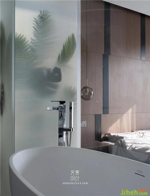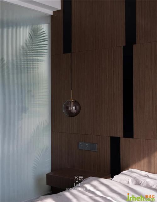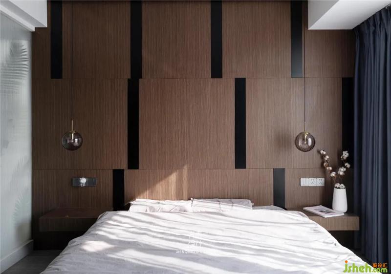 定制床頭柜將空間利用到極致,黑色木飾面線條穿插其中,看似錯亂又整齊的關系,在這一刻體現(xiàn)的淋漓盡致。