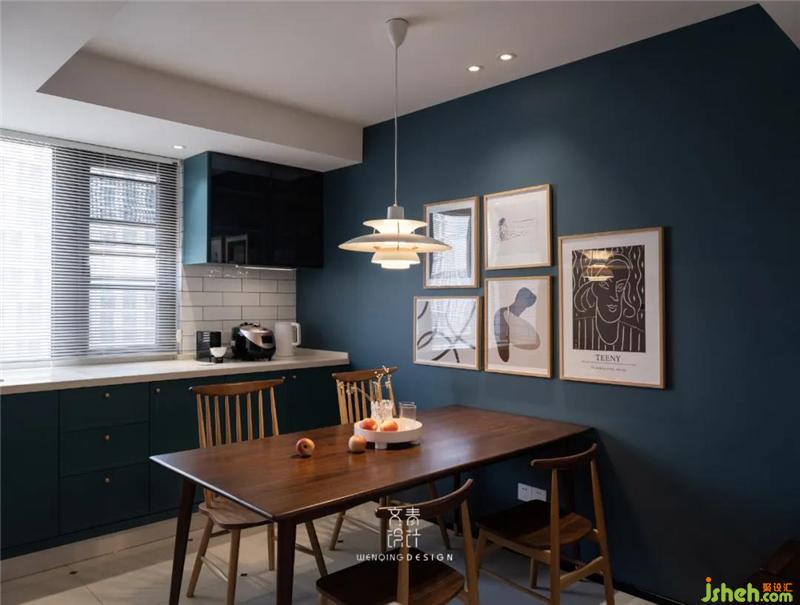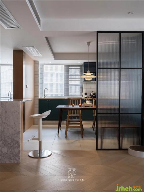 為了實(shí)現(xiàn)餐廚一體,我們將原本的房間改成了現(xiàn)在的餐廳,靠窗區(qū)域原本是房間的飄窗,按照餐邊柜的高度,定制了現(xiàn)在西廚餐臺(tái)加餐邊柜的設(shè)計(jì)。