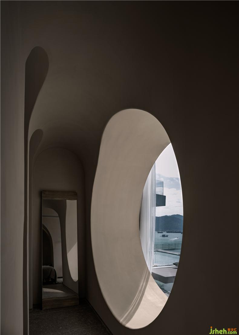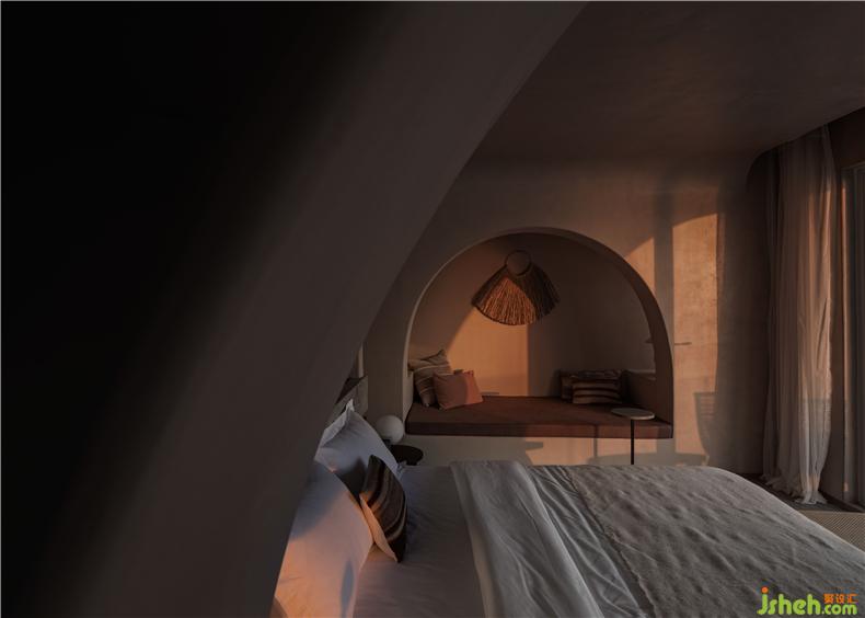 “時(shí)間是一個(gè)綿延的東西?!彼鼣y帶著光與影,在建筑的空間里自由地穿梭,彌散至建筑的每一個(gè)角落,在每一個(gè)黎明或午夜,留下一絲似有若無(wú)的呼吸,給予建筑空間有序中的自由色彩。不同于常用的黑白交織意象,民宿設(shè)計(jì)將古典的故宮紅,與歲月一同揉入建筑當(dāng)中,讓人在穿行感悟之時(shí),觸碰到歲月的溫度。