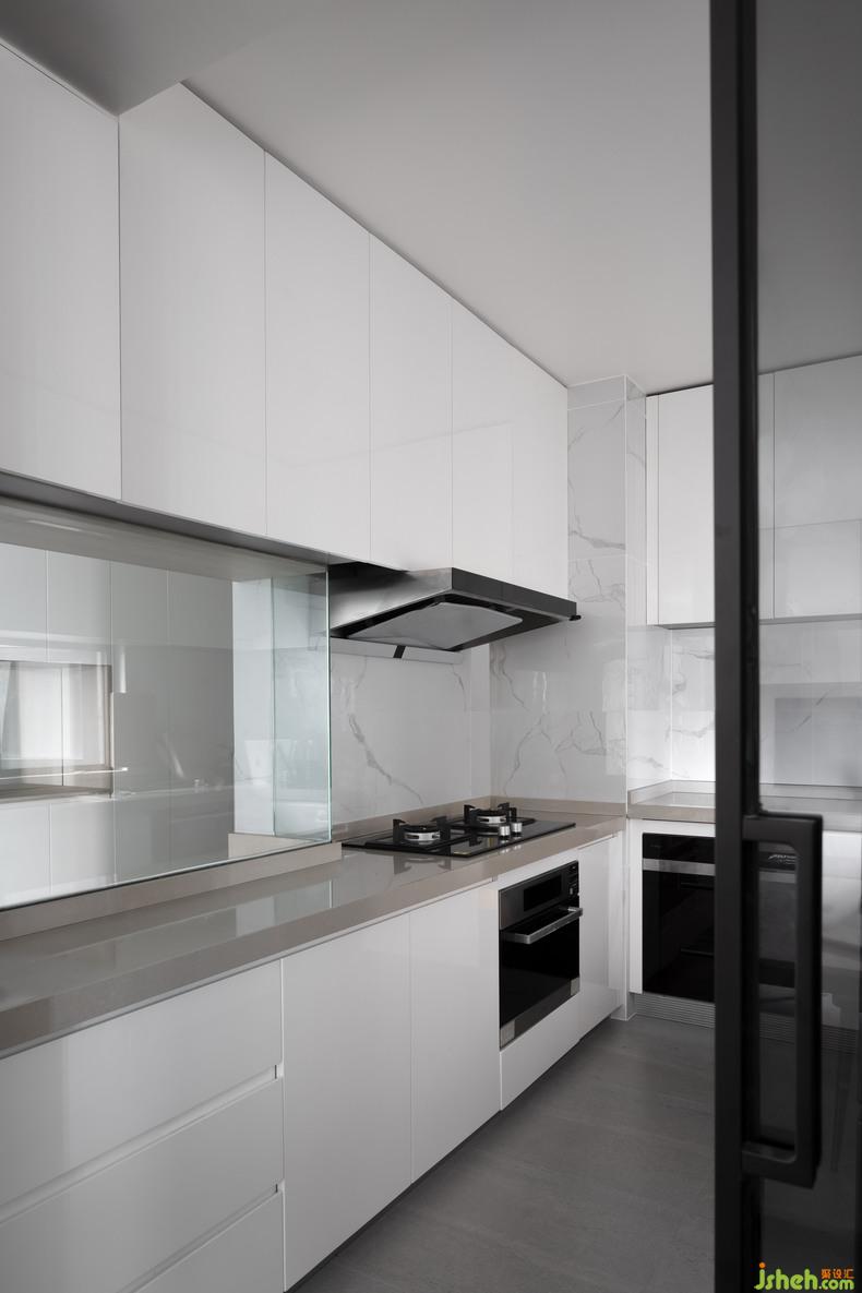 為保證廚房日間的光亮,設(shè)計(jì)師特意選用玻璃門(mén)作為廚房的隔斷。室內(nèi)設(shè)計(jì)師光線從客廳陽(yáng)臺(tái)流入,點(diǎn)亮了空間,也點(diǎn)亮了人的心情。透明的隔門(mén),既能防止因做飯產(chǎn)生的油煙侵?jǐn)_其他空間,方便日常的打掃清理;又能保證在廚房做事之時(shí),能看到在餐廳或是客廳交談玩耍的朋友家人,在完成視覺(jué)上的自然過(guò)渡和連續(xù)性的同時(shí),豐富人與空間、人與人之間的互動(dòng)關(guān)系。