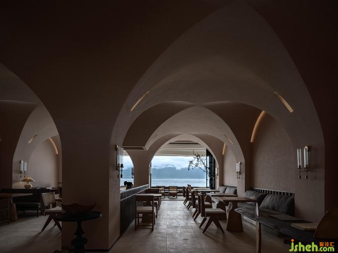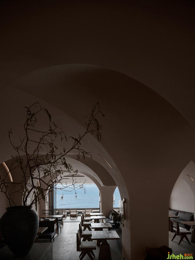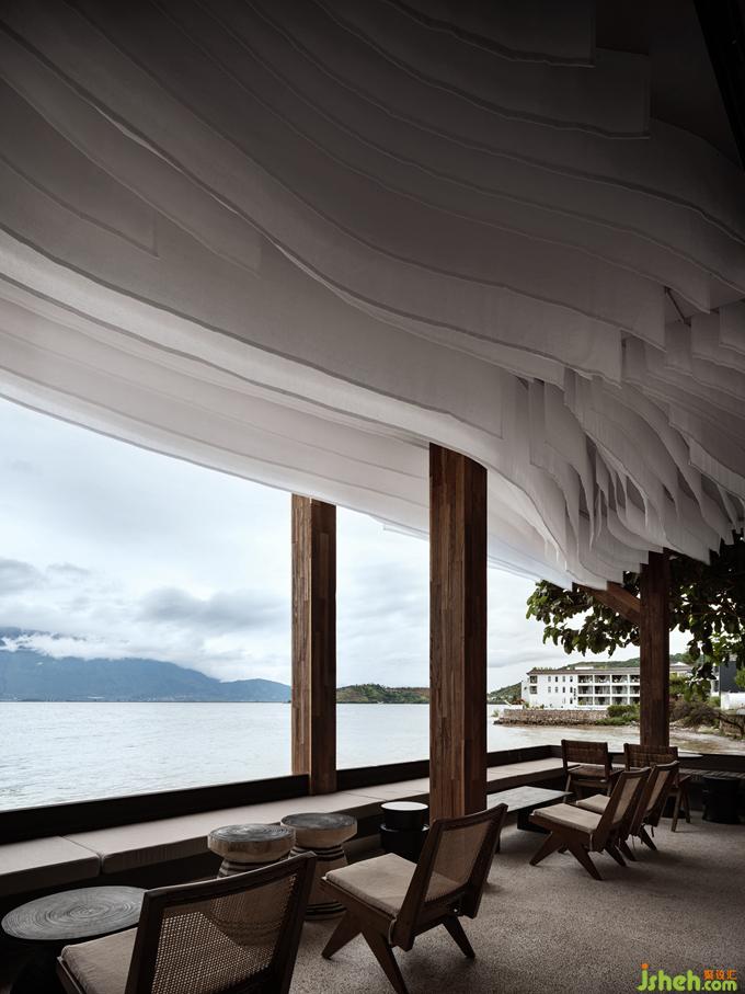 白色簾旌的裝飾,為整個民宿增加了一些動態(tài)的美感。它是氣候的符號,是自然與室內空間關系的過渡者與處理者。在四季的變遷中,與風互動,與水相映。也在多維空間的交融中,伴隨著時間緩緩流過。