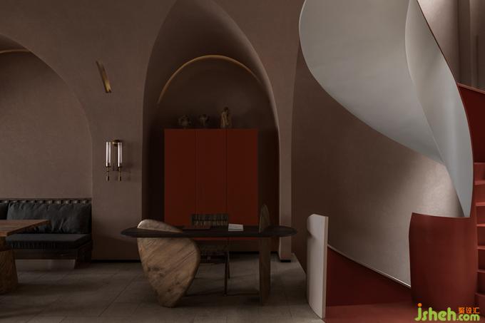 樓梯是建筑的時間紐帶,如同藤蔓一樣的蜿蜒伸展,勾勒出歲月的年輪,充滿流動感與溫潤質感。