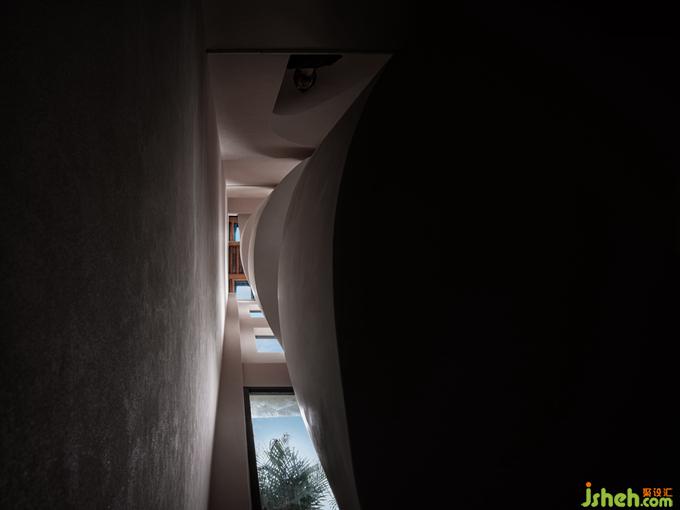 不同于外在的白色主色調(diào),樓梯內(nèi)裹的一抹朱色,為空間注入一分清新的亮度,帶來了年輕感與活力。卻又因添加的那一點(diǎn)樺色的沉淀,而多了一分克制的內(nèi)斂,將整個顏色的亮度下壓,達(dá)成了空間色系的平衡。酒店設(shè)計(jì)