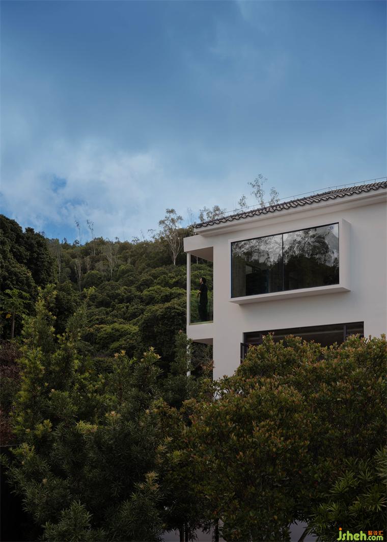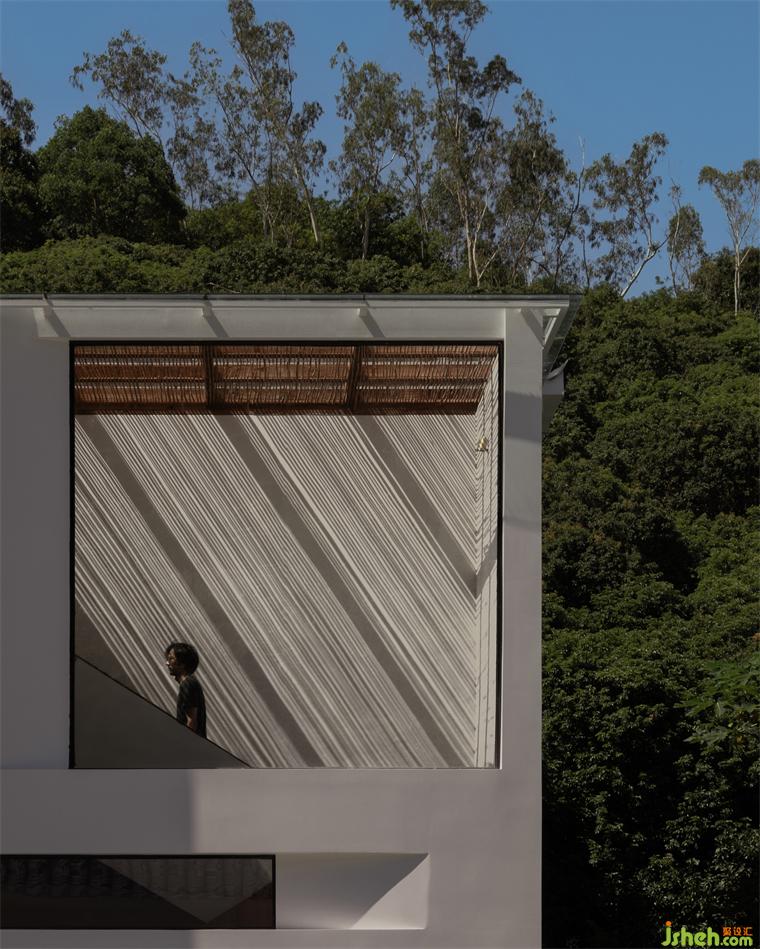入目滿是輕靈流動的綠意,為了避免打亂自然的調(diào)性,深圳民宿設(shè)計于是選用了傳統(tǒng)的白墻黛瓦,將林間居所低調(diào)融入。幾何線條描摹著理性思維,卻在嶺南山林的人文意境中變得感性起來。光影投射下的平行線,隨著林海搖曳在空間中沉浮,明暗交替著撥動琴弦,于平實(shí)中寓深情之致,空間的藝術(shù)維度于此間盡然豐裕。