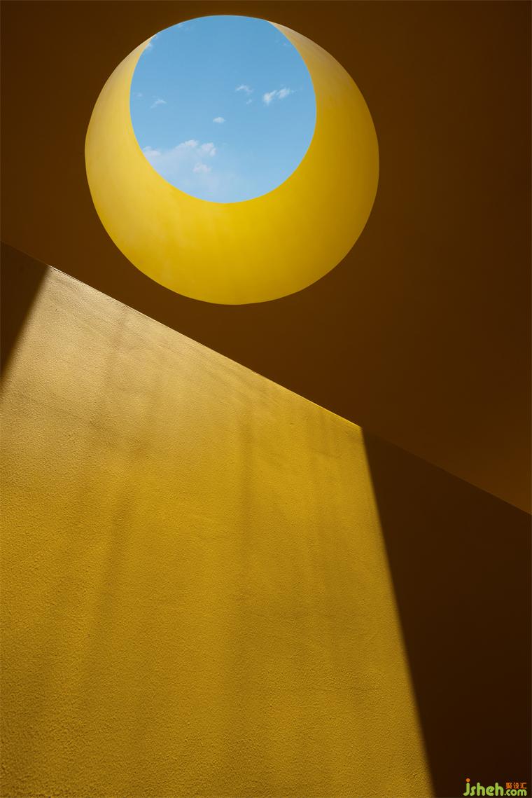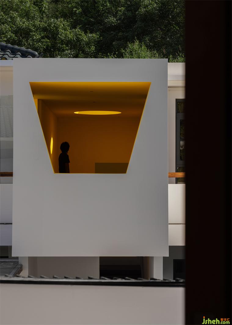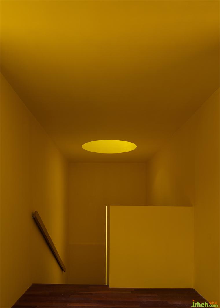 借一縷陽(yáng)光,山中便多了一抹燦然的暖意。深圳民宿設(shè)計(jì)在上下往返間豎立的巨大墻體,將整體空間解構(gòu),光明與黑暗割半而分,卻又被圓窗引入的天光修補(bǔ)而合。油畫(huà)般濃郁的色彩生發(fā)出斑駁的層次感,在空間內(nèi)自由伸展,最終復(fù)融于梯形窗景明媚的日光中。