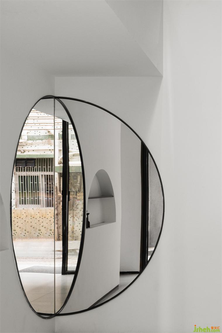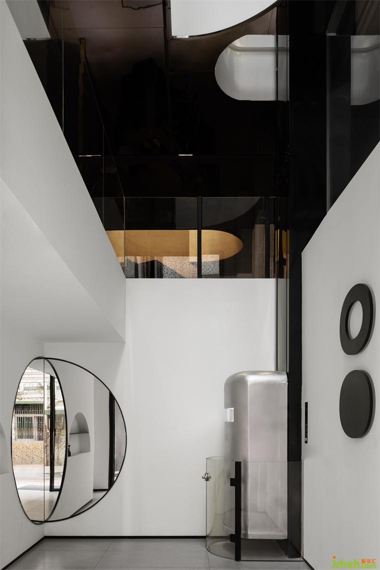 入門的一樓,是一處意識(shí)的轉(zhuǎn)換指引。90°垂直穿插的鏡面,創(chuàng)造著景致的循環(huán)相生。酒店設(shè)計(jì)市井之景的投射,行人之影的映照,穿插交錯(cuò)間引發(fā)室內(nèi)室外、人與環(huán)境的多重互動(dòng),空間的陣列秩序于此獲得全新的排列方式。