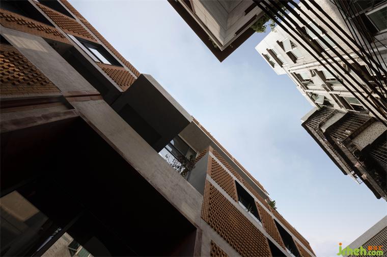 日光向下,酒店設(shè)計(jì)建筑被籠罩于紅色,經(jīng)歷時(shí)間的風(fēng)化后,逐漸冷卻固色,成為新的故事的承載容器。此處的到訪者化身為歷史的筆,記錄定格的當(dāng)下與變化的未來(lái)。