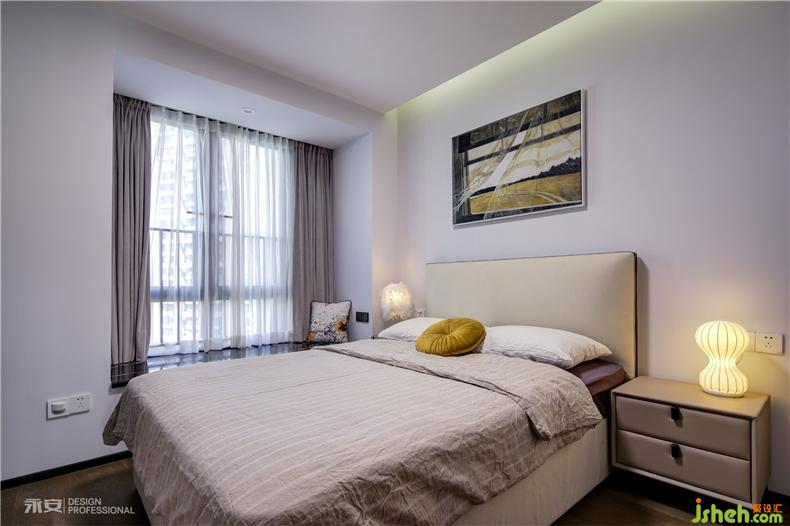 白色為基調(diào),搭配以原木地板的次臥,剔除掉無關(guān)的裝飾后,呈現(xiàn)出來的是回歸本心的簡潔與素雅