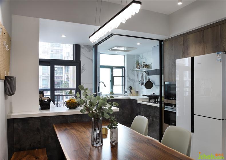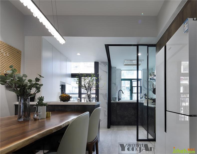 灰白色的廚房,實(shí)用大方,移動(dòng)玻璃門,把西廚容納進(jìn)來,讓陽光與美味一起綻放。