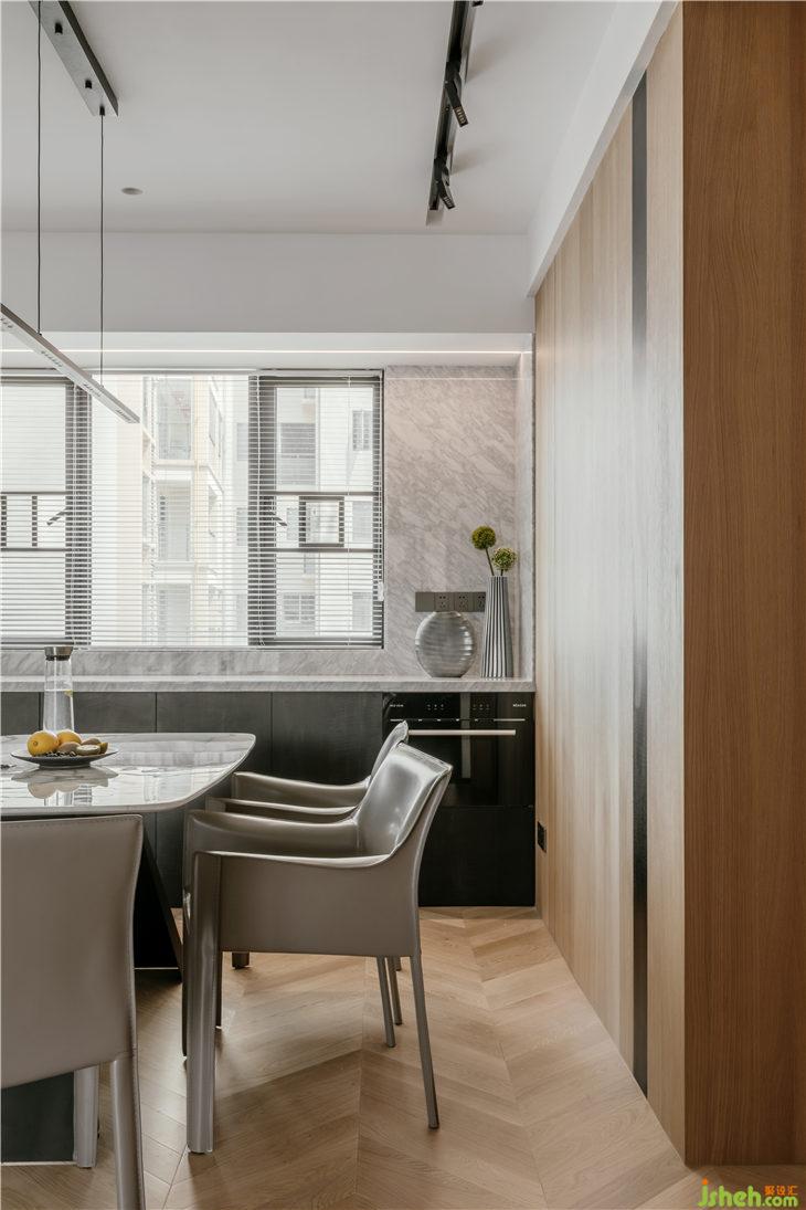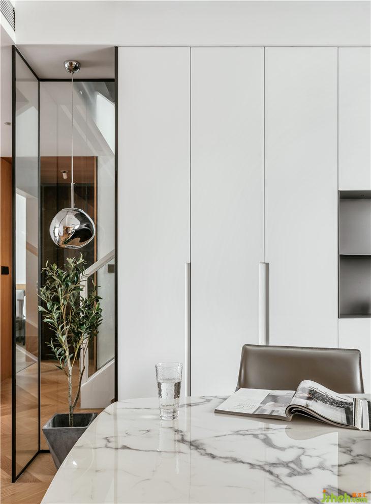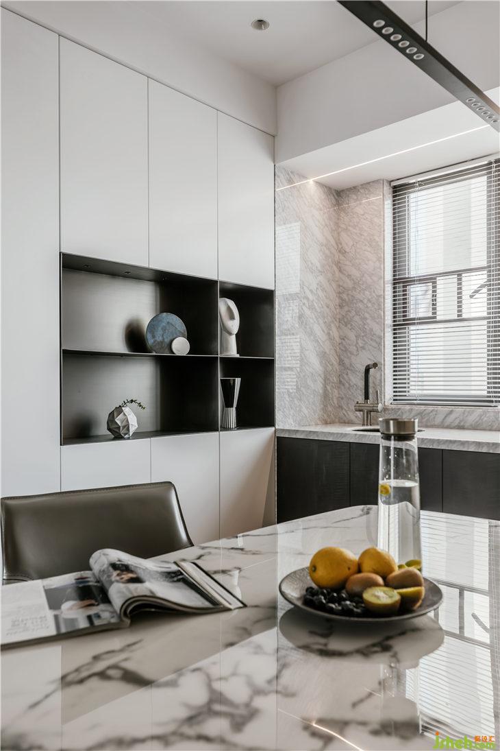 餐廳旁水吧臺(tái)的設(shè)計(jì),兼顧日常全家人飲水及冷餐操作吧臺(tái)的作用,清晨的陽光懶懶的灑進(jìn)來,笑意盎然。