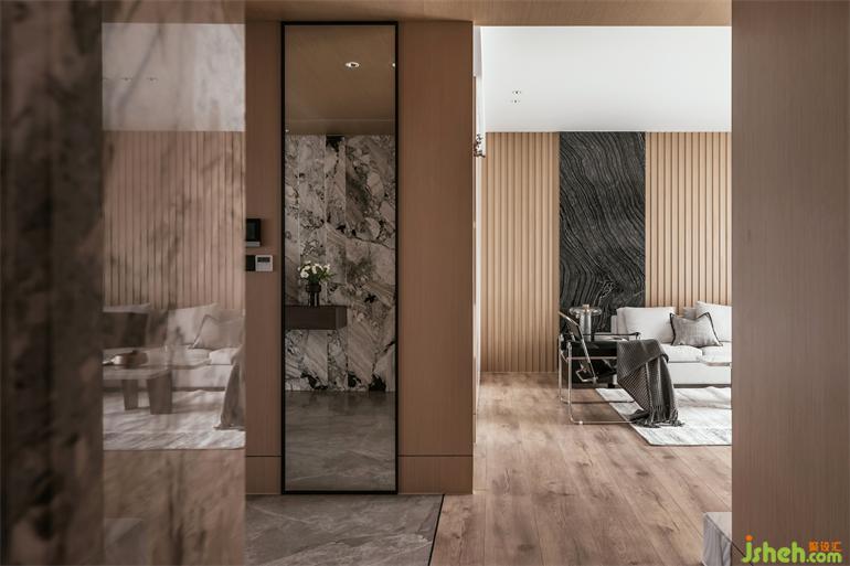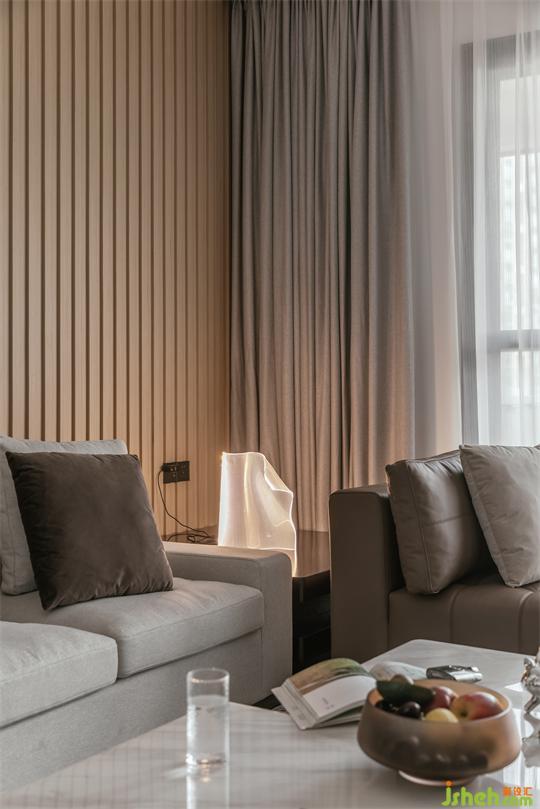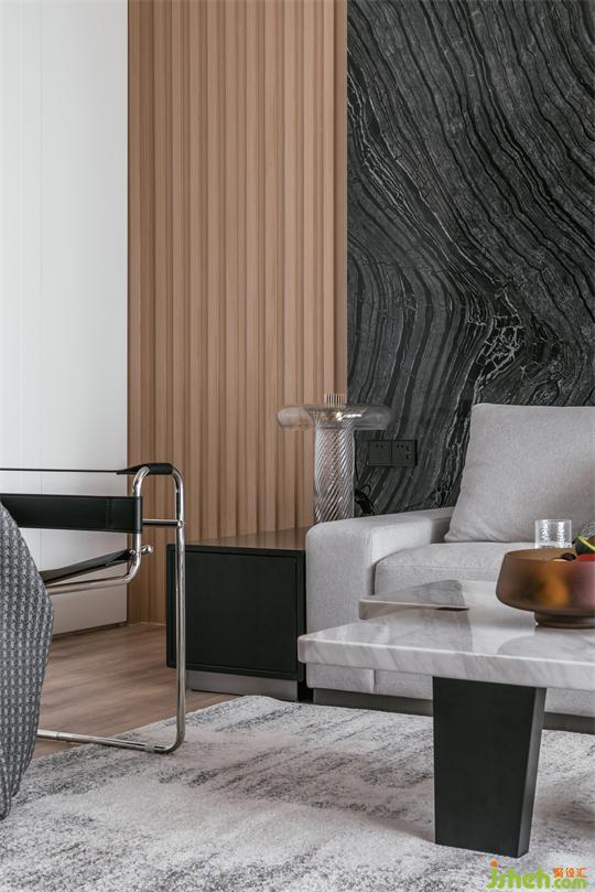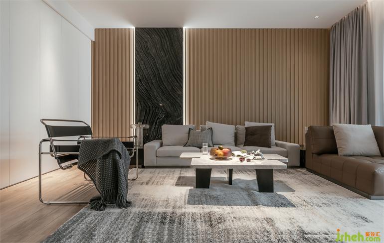 入門處運用天然加多利亞石材作背景,賦予空間藝術人文氣息。河源家居設計懸空一體柜,不同材質(zhì)色澤之間互相碰撞,巧妙地運用肌理差異性劃分區(qū)域功能。注重空間的連續(xù),入戶門前的儲物柜與對側(cè)水吧臺,提供充足儲物空間。純粹自然的材質(zhì),營造感官場域。材質(zhì)間的對話。木柵格與黑色天然石組合,線與面的交織,光影間形成虛實對比,空間架構純粹,家具錯落有致的陳列及燈具的點綴,加深整個空間細節(jié)體驗,延伸視覺空間。