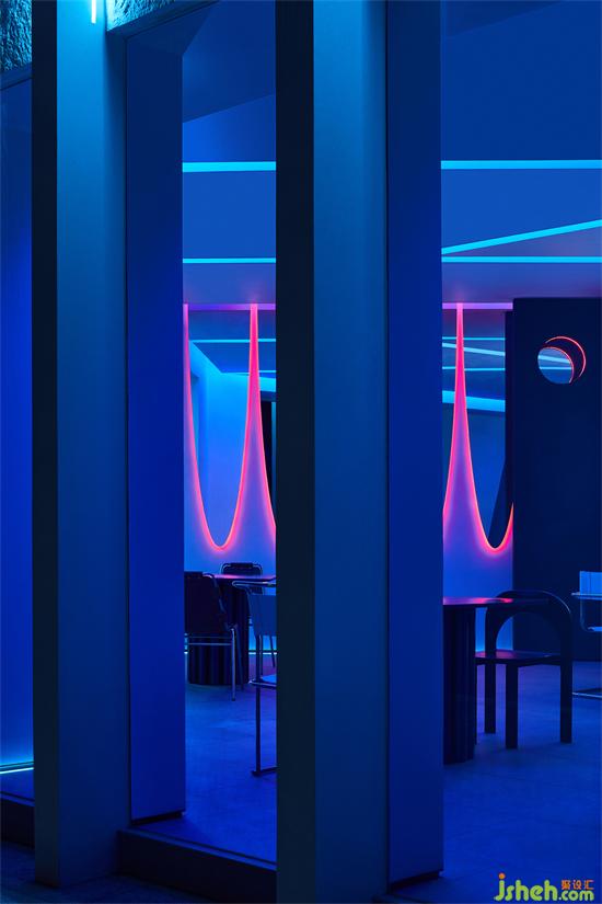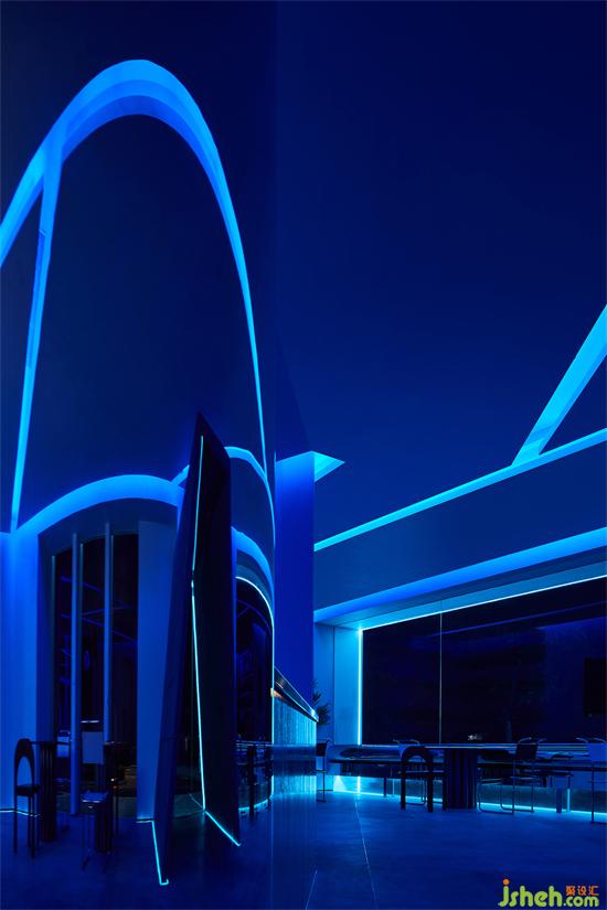 雙羽設(shè)計希望借由抽象幾何的空間塑造,打造一種關(guān)于就餐場所的儀式感和科幻感,激發(fā)顧客對于自然與美食的美好聯(lián)想;教堂設(shè)計通過材質(zhì)的組合與碰撞,自然光與人造光線呈現(xiàn)的反差與想象,建構(gòu)出一個關(guān)于白天與夜晚,情緒與感官、自然與科技、當(dāng)下與未來的雙重都市幻想。