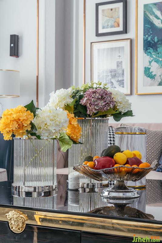 經(jīng)典石膏線搭配貴氣金邊,仿真花擺件增添浪漫色彩。