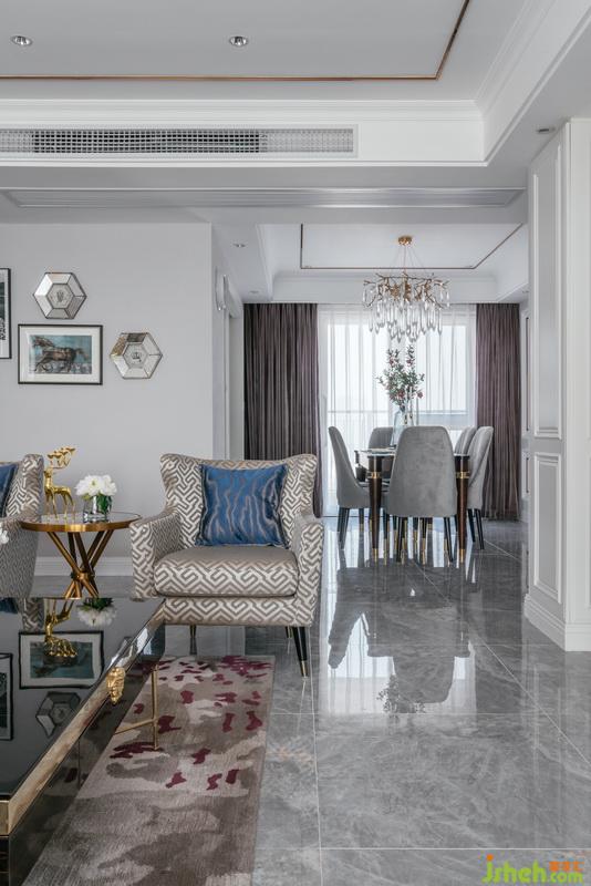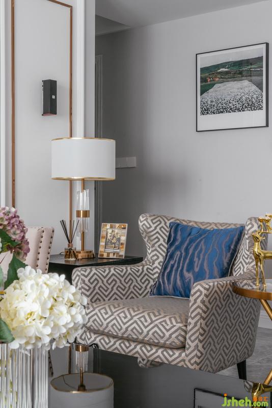經(jīng)典大氣大理石磚,增添美式貴氣,時尚幾何菱形沙發(fā)點綴呼應(yīng)。