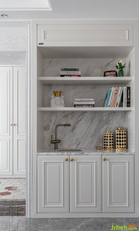 灰白大理石紋搭配白色柜,簡潔耐看。