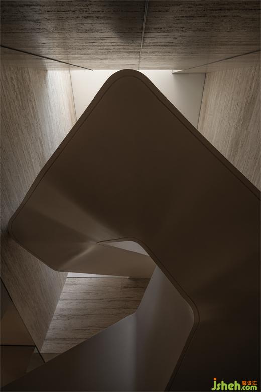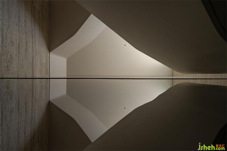 游觀于此,向下俯視,藝術樓梯遂成空間焦點。打破傳統(tǒng)空間的靜態(tài)感,視線流動,使空間在垂直方向上得到延展與層次感。而大量天然洞石,會所設計使室內(nèi)猶如天然洞穴,當光影流動,呈現(xiàn)出自然的原始力量,室內(nèi)為山,室外為景。