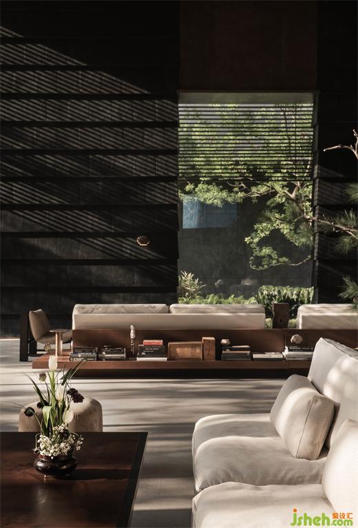 不僅是空間,更是一個場所。錦宸府與時間緊密相連,亦似游離其外,只靜靜佇立,星點相連。售樓處設(shè)計連廊將各個開放空間交織關(guān)聯(lián),以迎納流動變化的姿態(tài)。不妨緩步其間,放慢節(jié)奏,于時光的流逝中剝離而出,游走于園林與空間之間,親歷那難以瞬時盡攬的空間豐富與錯綜。