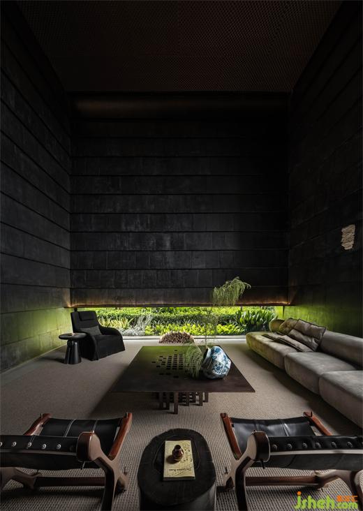 在架空層下,隱匿著一處多功能的空間,為生活方式開辟了諸多可能性。于此,品茗午茶,真正享受那片刻的寧靜與平和。光影在時光流轉(zhuǎn)中變化無常,豐富的光影交織賦予此地深邃的遐思與溫情。當(dāng)空間沉靜,時間與生命在其中若隱若現(xiàn),使得使用者于此尋得情感之寄托。