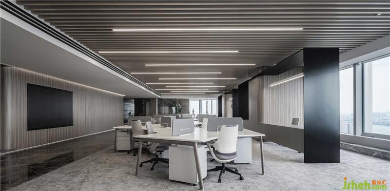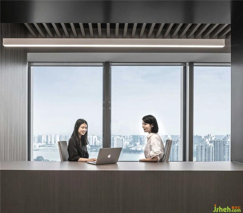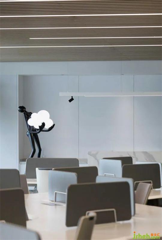 經(jīng)緯交織的大理石,云蒸霞蔚的地毯,幻化出一個(gè)有天空、云朵、星辰、河流的靈動(dòng)空間,身處其中,宛如湖水無聲流淌,延綿無盡,又如云層隨風(fēng)涌動(dòng),與窗外天境融為一體惠州辦公空間設(shè)計(jì)。