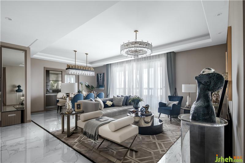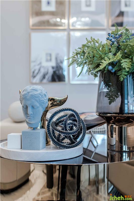 素雅的空間中彈奏著藍(lán)調(diào)的靜謐,澄明而不耀眼,安逸而不沉寂;金屬的局部點(diǎn)綴,如同夜色將至的交糅,在靜謐中隱隱散發(fā)出皎潔光華;空間中陳列的藝術(shù)品,在沉穩(wěn)與律動(dòng)交融的變化中,無(wú)聲地訴說(shuō)著優(yōu)雅低調(diào)的空間語(yǔ)匯。
