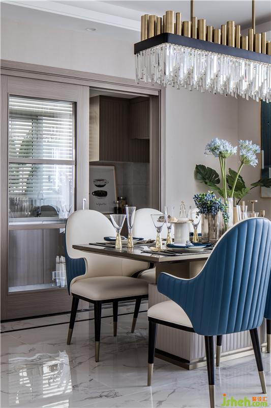 流線交纏的金屬燈飾呼應(yīng)餐椅的擺放,將簡(jiǎn)約中蘊(yùn)藏的豐富層序美展現(xiàn)的淋漓盡致。飲食其間,柴米油鹽在生活的外殼之下,投射了人們對(duì)生活幸福點(diǎn)滴的期許。