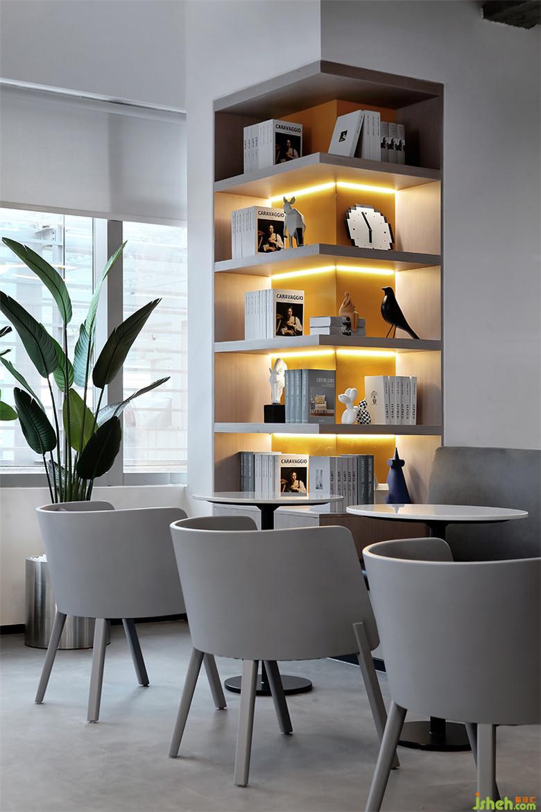 書吧區(qū)域與咖啡吧的結合體現“SQUARE”社群文化的開放性與體驗性,不僅是一處自由交流的共享空間,亦是緊張壓力的緩解之地。