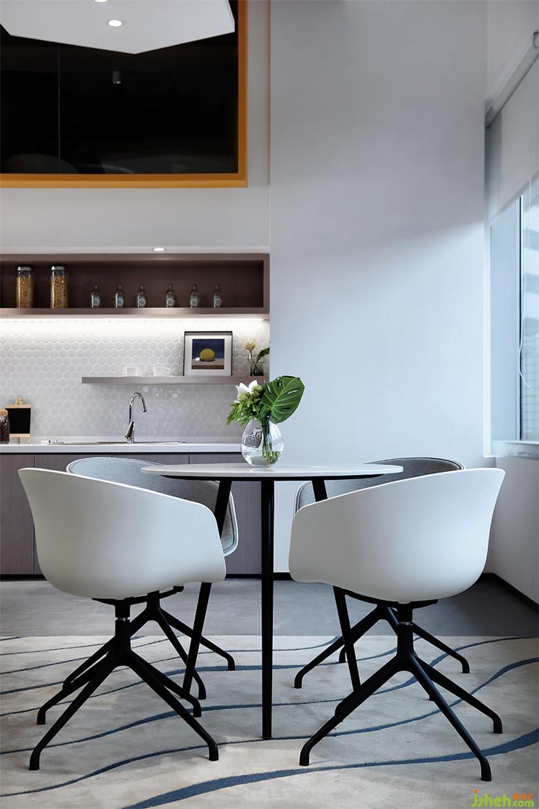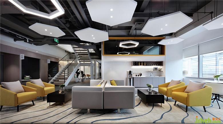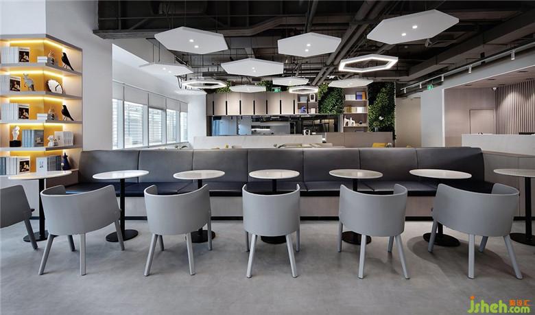 天花保留了原建筑既有的痕跡和肌理,與飄浮在空中的菱形體塊嵌入融合;共享和交流通過家具變化演變不同的場域功能,多層次多功能的智慧辦公系統(tǒng),滿足人文關懷之外的功能考量。辦公室設計