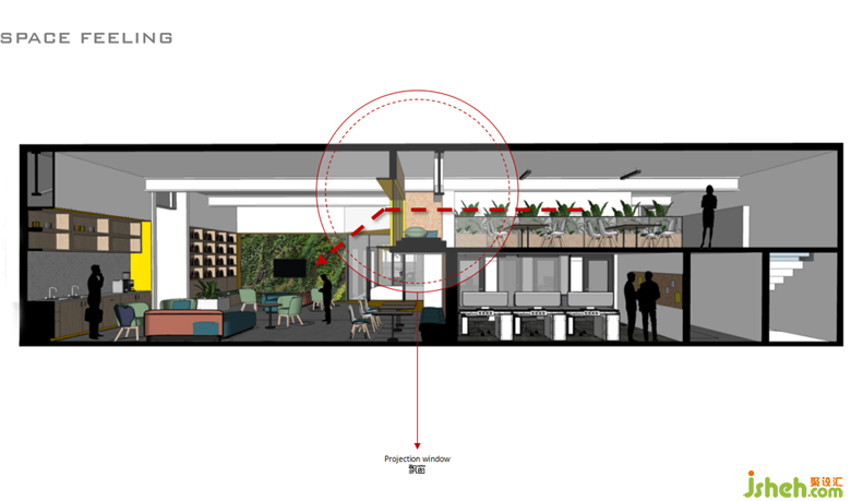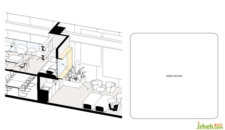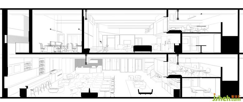 辦公樓層之前加設的夾層創(chuàng)造了一個層次交疊的空間序列,空間獨立而連貫又互不干擾,使空間張力得到重構。進一步加強了整個樓層的連接和可視性。