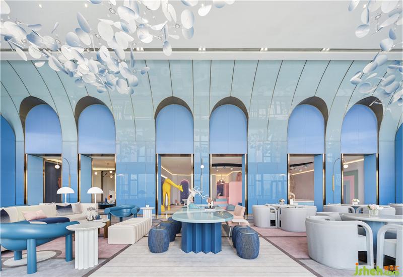 城堡圓頂造型,無限循環(huán)的空間,像是西方城堡的城墻,一種戲劇化的光影分割,虛實(shí)交織,以獨(dú)有的韻律性與節(jié)奏感開啟著對夢境的探索,從幻想的源頭打開未知之門.....