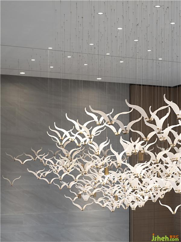 銀翅紛飛,虛實(shí)游騁,定格其間,或?yàn)楦≡?,或?yàn)橛螣?,滇池的影子化作空間的情感語素,動靜結(jié)合的藝術(shù)張力,演繹出詩人范汭所云“滇池池上云悠悠”的清幽澹逸。裝修公司