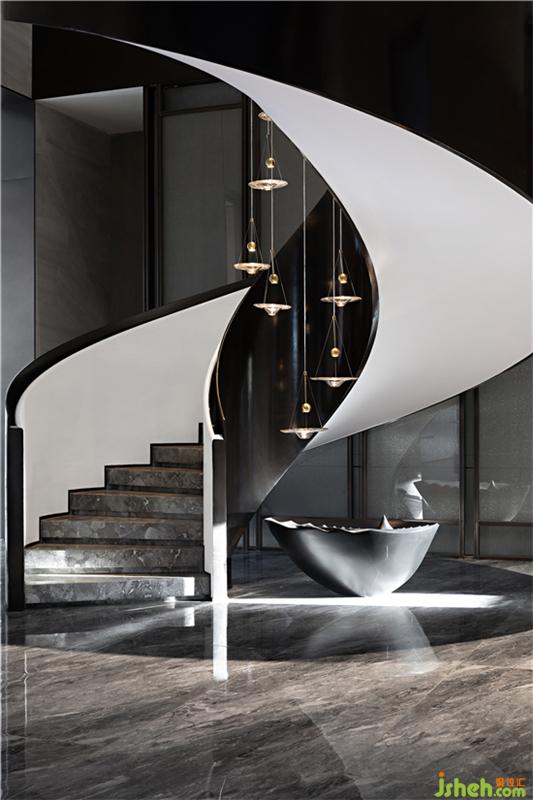 一步一景,旋轉(zhuǎn)樓梯以滇池之水流動的形態(tài)為構(gòu)想貫穿空間,形成了更富有韻律和耐人尋味的故事脈絡(luò)。宛如扶搖直上的激情,更似生命的交響演奏。裝修公司