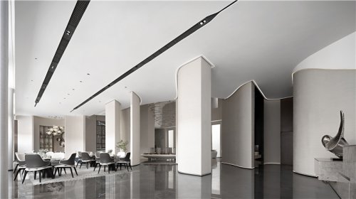 哈爾濱有一個(gè)很貼切的別稱,叫作“冰城”。冰雪之城哈爾濱,冬季被其演繹得分外浪漫。門廳的藝術(shù)裝置造型源自雪花,延伸出連綿起伏的冬日景象。