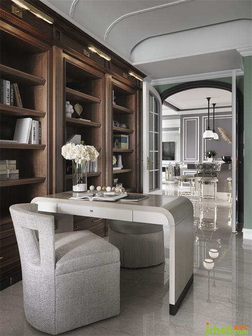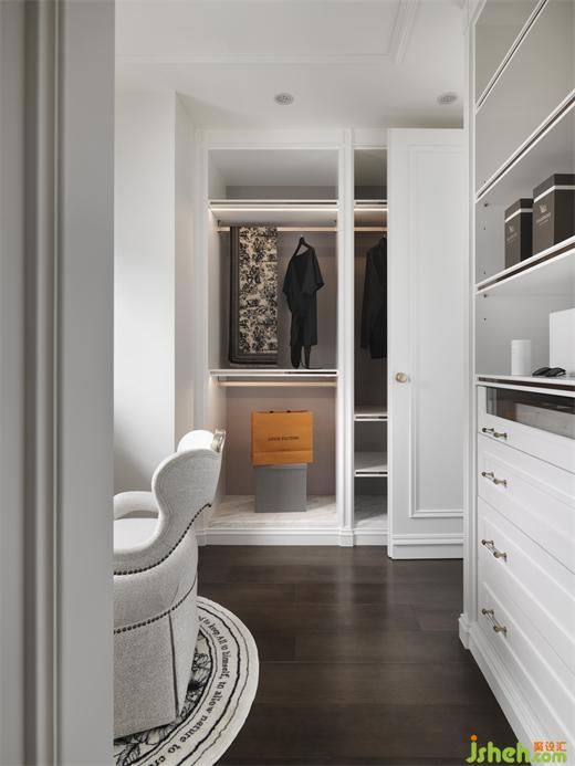 「家具是居家的表情,重要性可見一斑,本案的家具都是在麗居國際家具選購?!乖趯I(yè)的美式家具賣場,尚展設(shè)計特意選擇「木」、「金」色系的家具為設(shè)計勾勒金邊,「好的家具能讓家人親友在互動的過程中更舒適、更自在,在人體工學(xué)與材質(zhì)挑選上馬虎不得,我們也會建議業(yè)主這方面的預(yù)算不能太節(jié)??;另外我們在設(shè)計空間時有些小心思,希望來看屋的女主人能非常開心,象是打開珠寶盒一樣的那種愛不釋手的喜悅,因此我們選配了珍珠色的沙發(fā),妝點霧金、霧銀的低調(diào)奢華,小而精致的座椅、金色為主的茶幾與燈具,修長而雅致的壁燈......以鏡面、石材、金屬、亮面物體疊加奢華質(zhì)地,展現(xiàn)貴族氣質(zhì),在大空間的中性色襯托中收斂鋒芒、平靜宜人,營造雅仕氣質(zhì),韻味無窮。」主調(diào)是大器的基底讓男主人滿意,細(xì)部表情則是曖曖含光投女主人所好,由尚展設(shè)計精心調(diào)配的輕奢貴族比例,的確有讓女性越看越著迷的魔力。