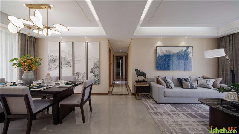高雅而簡(jiǎn)約的客廳中,含有待客之道,“所處有序、所居有禮”。大理石和金屬組合,實(shí)木與地毯拼接,讓整個(gè)客廳充滿后現(xiàn)代的和諧與傳統(tǒng)的優(yōu)雅。