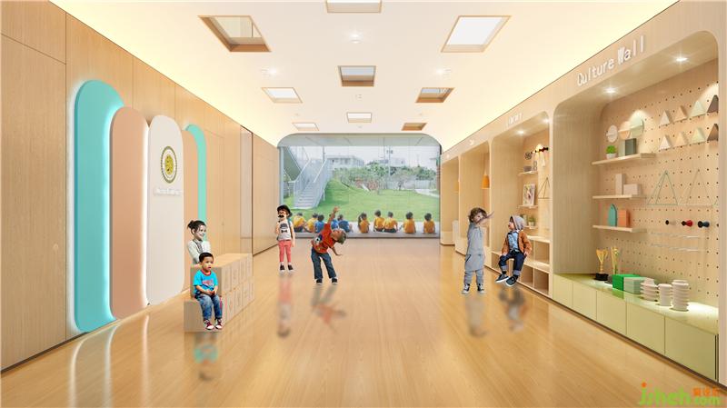 前廳用大量的暖色調(diào),讓整個(gè)空間光線更加明亮柔和;地面鋪設(shè)實(shí)木地板,整個(gè)空間顯得溫暖典雅。幼兒園設(shè)計(jì)師用大大的音符設(shè)置整個(gè)墻面,使整個(gè)空間顯得活潑跳脫。天花采用的是燈盤和鏡面作為主造型,滿足小孩的好奇心也可以提升整個(gè)空間質(zhì)感。