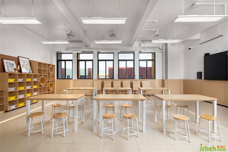 學校建設(shè)設(shè)計整體呈現(xiàn)出的是簡約的造型與樸素的色彩,與當下課程形成很強的互動性和適應(yīng)力。烘焙室科學合理進行空間的規(guī)劃,采用開放式流理臺,極佳的采光與視野,方便教學實操與師生互動,讓烘焙課程變得更加自由開放。