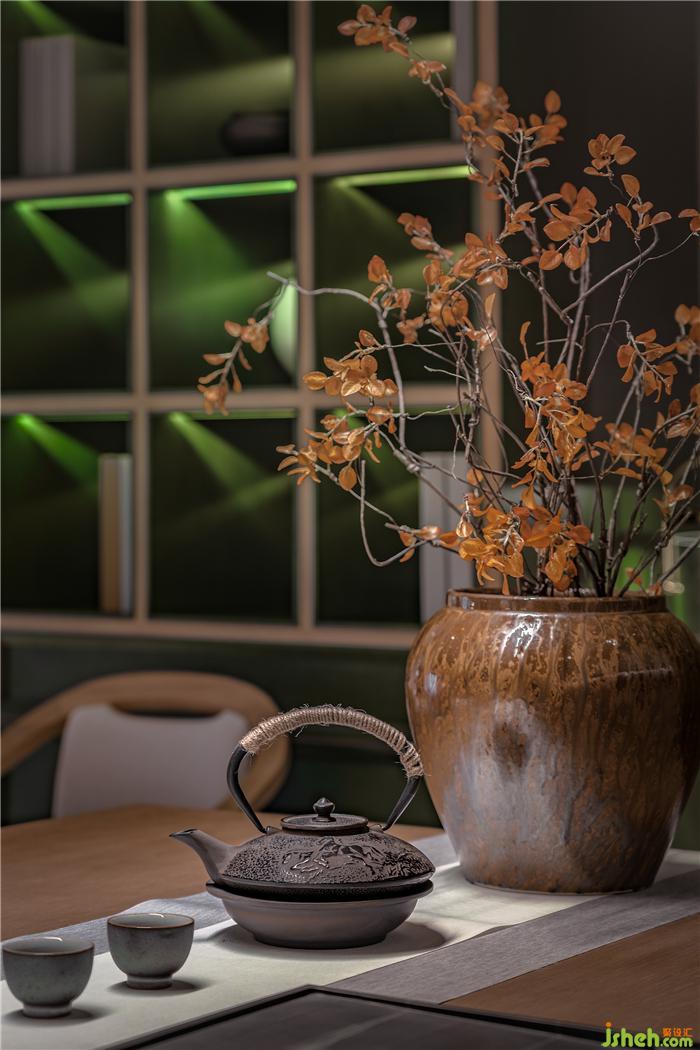 在以藝術(shù)美學(xué)與簡潔質(zhì)感為內(nèi)涵的空間中,書畫與茶藝使整個(gè)空間彌漫儒雅書香氣息,把大自然的顏色祖母綠點(diǎn)綴其中,使整個(gè)空間更具有生命力。