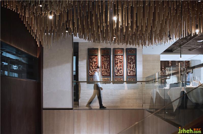 二層墻面上吊掛了四幅江南木雕花板,是業(yè)主無意間收來的舊時精致之物,置于當下的現代環(huán)境之中。Four sculpted panels are hung upon the wall on second floor. These are delicate collections of the shopowner.
